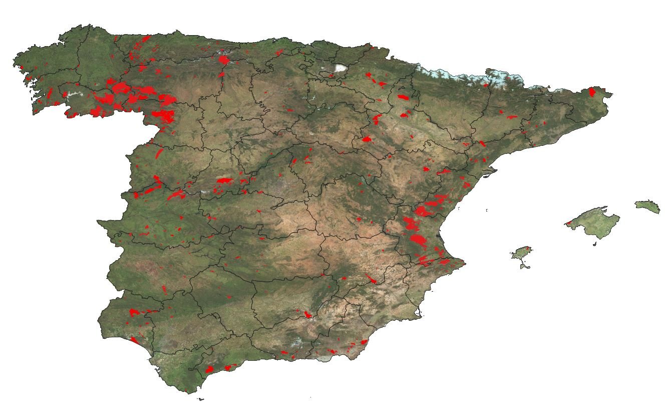 Se ha actualizado el visor cartográfico con el perímetro de los grandes incendios de 2025. Según el perímtero de EFFIS, a fecha de 24 de agosto la superficie recorrida por el fuesgo esciende a 387.737 ha
